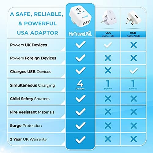 ⚡ THE SAFEST TRAVEL ADAPTER – One of the very few travel adapters that passes the very strict regulatory standard BS:8546. This MyTravelPal adapter has surge protection and a ground / earth connection; essential safety features for many electrical appliances, meaning you can use this adapter with high powered electricals such as computers, curling tongs, hair dryers, laptops, phones, etc without worry!