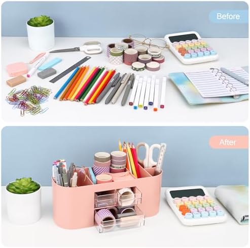 【Premium Material】 This pen holder is made of PS plastic, which is firm and not fragile, it can match various styles of home decoration, use this pen holder to organise your desk at home, school, or workplace.