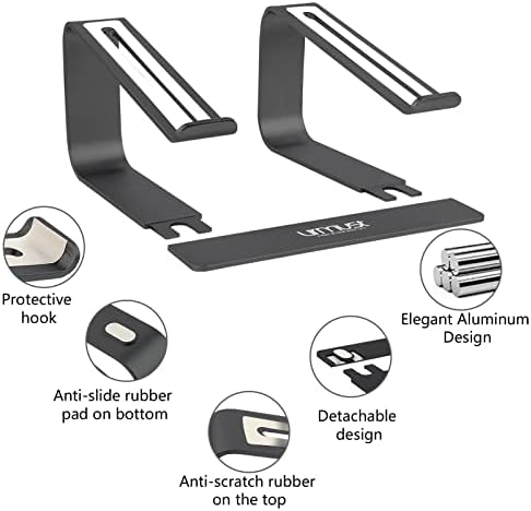 【Sturdy construction】: This laptop holder is made of Durable allusion alloy material, sturdy enough to support up to 8.8 lbs(4kg), no wobble at all; Rubber pad in the bottom ensure your laptop stable on the desk and the large rubber pad on the top prevents the computer from scratching.