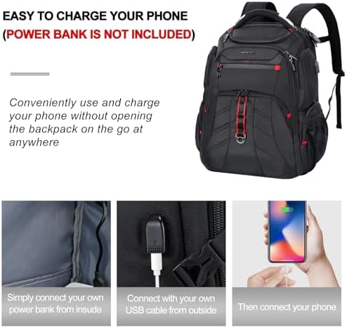 USB PORT INSTRUCTIONS:Putting your Power Bank (NOT INCLUDED) into backpack and connect internal USB cable, then let your charging cable insert external USB port to connect your electronic device.