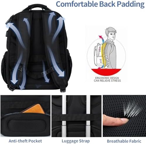 LARGE CAPACITY & MULTI-FUNCTIONAL COMPARTMENT: This large travel backpack with separated compartments and lots of pockets which can provide roomy space for your 17.3” laptop, iPad, power bank, A4 files, wallet, cards, clothes etc. A sunglass hard shell zone is designed on the top which is convenient and safe for you to put your sunglass, cell phone etc.