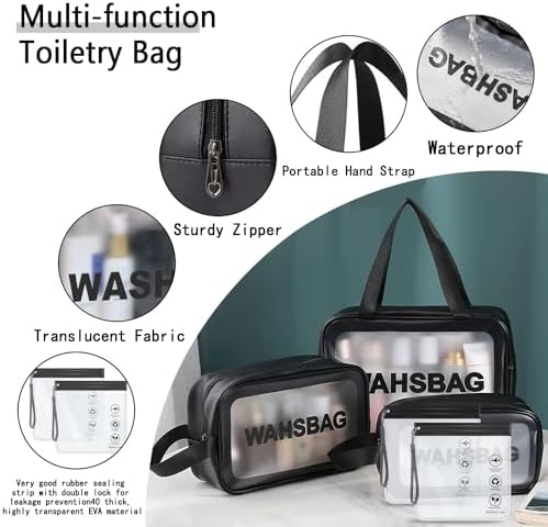 【Reinforced Zipper】The metal zipper with large opening at the top is very convenient and slides smoothly. You can take out items easily. The zipper is very strong and long-lasting, making this toiletry bag reusable. Simply wipe it with a damp cloth to make it look brand new.