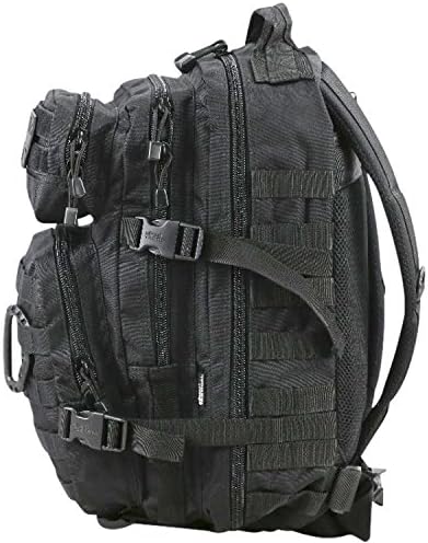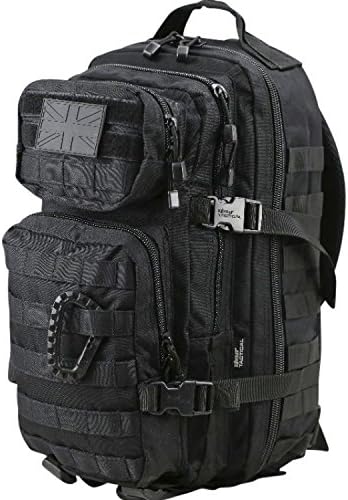 Product Specification: Brand New Colour – Black Compact 28L Design Molle Tabs & Compartments All Over . 2 x Front Pockets & 2 Separate Compartments. Fully Adjustable Shoulder Straps & Top Grab Handle. Side Compression Straps, Quick Release Fasteners & Easy Pull Zips. Integrated Vented Mesh Air Back System Robust Waist Strap Made From 1000 Denier Waterproof Cordura . Height Approx 19″ / 48Cm,Width: Approx 10″ / 25Cm,Depth: Approx 9″ / 22Cm (Uncompressed),Weight: Approx 1.25Kg (Empty). High quality & Easy To Use Multi-Purpose Assault Pack Made To Full Militray Spec. Includes Water Bottle Carry Clip