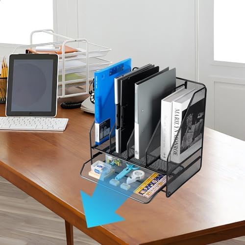 【DURABLE AND STURDY DESIGN】- Made of high-quality metal with a durable mesh surface, this magazine file organizer is built to last. It can withstand daily use and provides excellent support for your items. The sturdy construction ensures that your files and folders stay in place and do not tip over.